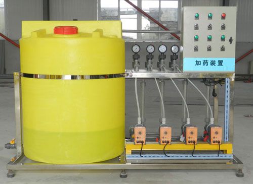在水處理、化工、印染等行業,在水中或其它液體中經常遇到要按一定比例投加另一種溶液。生產過程中是連續的,這種投加工作也必須同樣是連續的。如水處 理中投加混凝劑、助濾劑、消毒劑。冷卻塔投加阻垢劑,化工、印染中定時、定量投加一定量的化學藥劑、酸堿等。這些都需要一種既能配制溶液,又能定量定時投 加藥劑的設備。本公司在總結吸收國內外一系列相關產品技術的基礎上開發出了ZHJY型全自動成套加藥裝置,能夠定時、定量、連續用于藥劑的投加,可實現 延時及遠程控制。